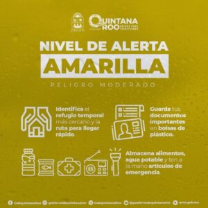🟡⚠️ ¡Aviso! Quintanarroenses entramos en #AlertaAmarilla ante el alejamiento del huracán #Beryl de nuestras costas! Seguimos en fase de #PeligroModerado, el ciclón continúa alejándose de nuestro territorio 🚨🟡