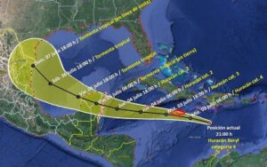 Las predicciones del NHC_Atlantic y de Protección Civil acerca del huracan Beryl