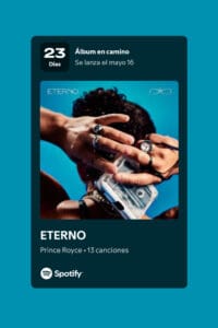 Echa un vistazo a la página de cuenta regresiva para el próximo lanzamiento de Prince Royce.https://open.spotify.com/prerelease/72ZlwmMt1c4SKoGmr9oO01?si=jIpdrDqORJSOssRcwEtlwA